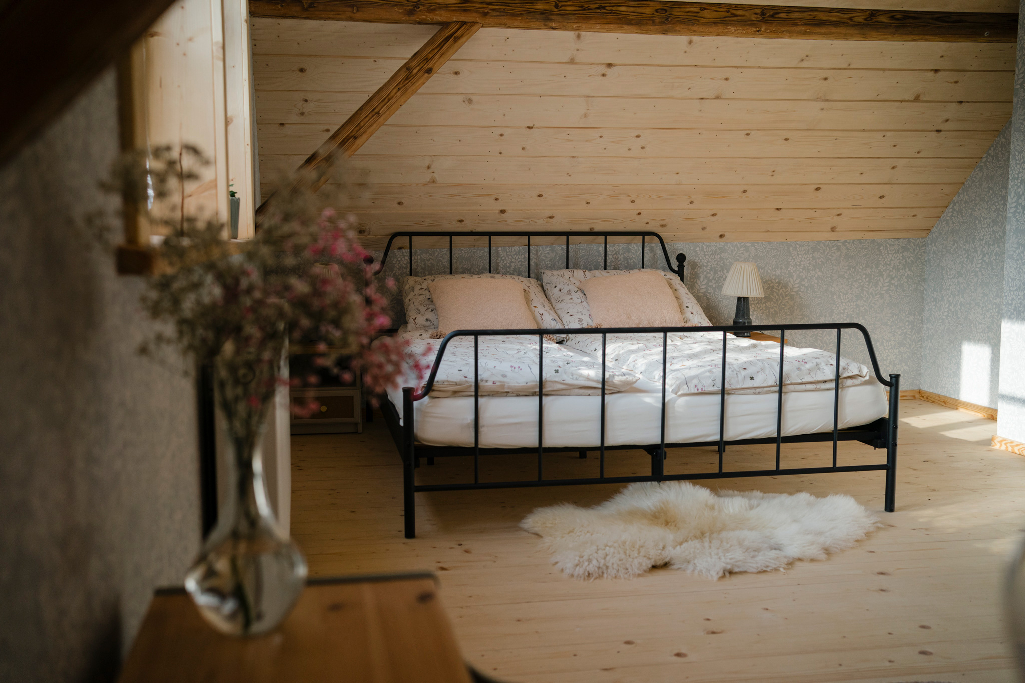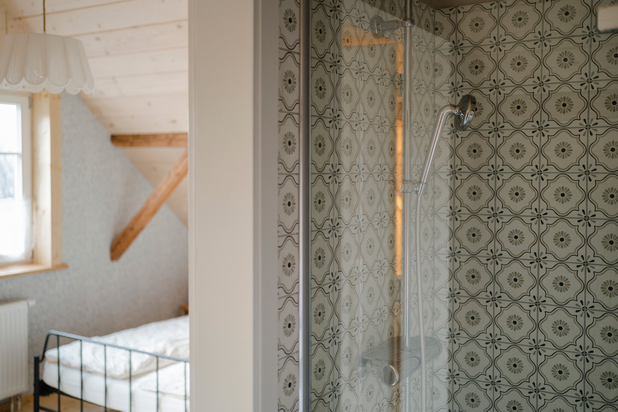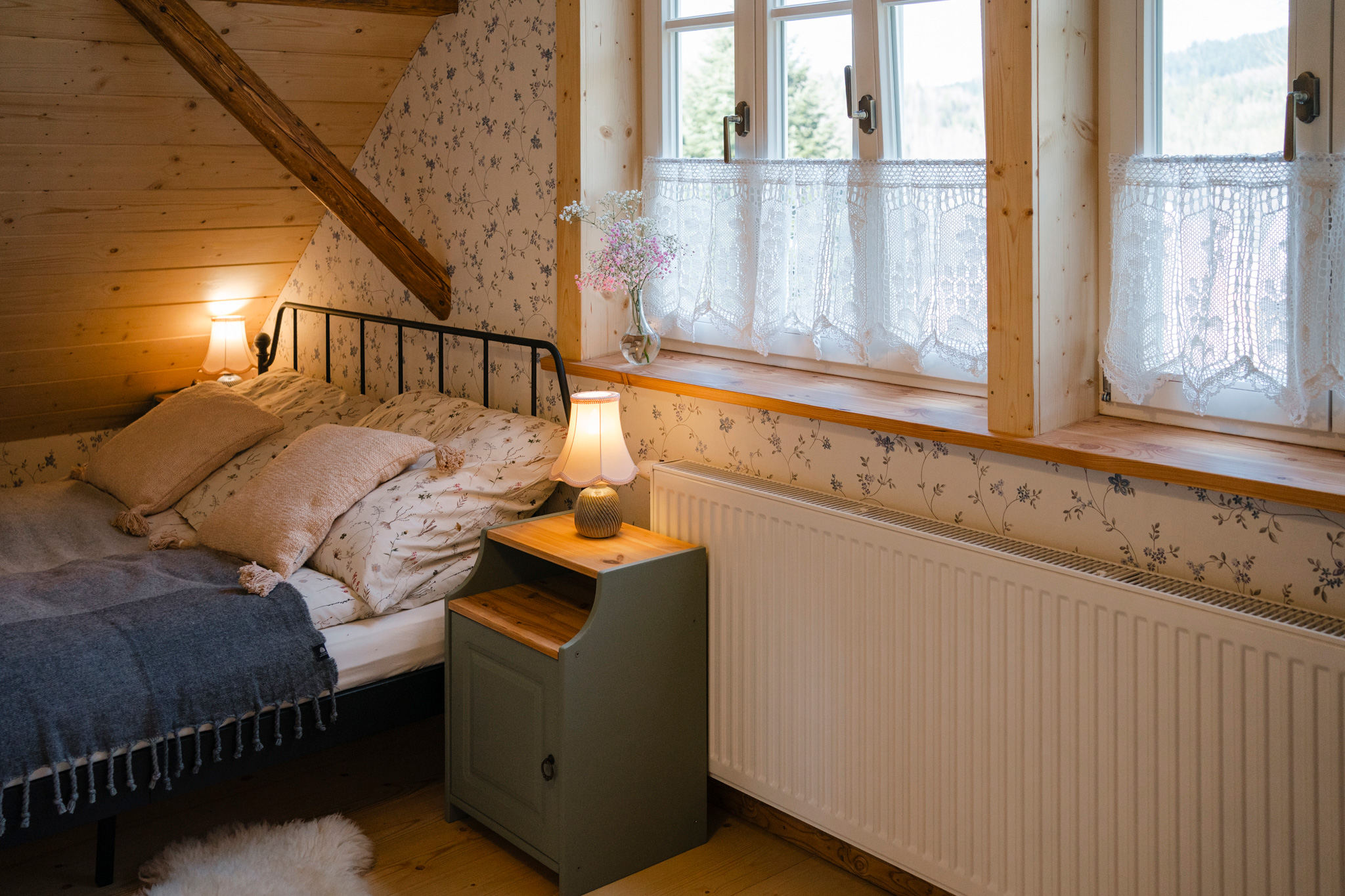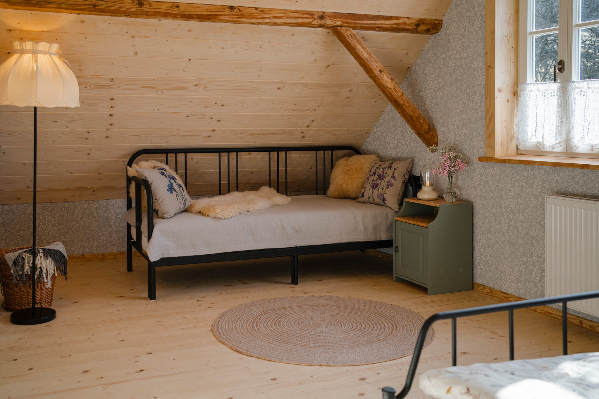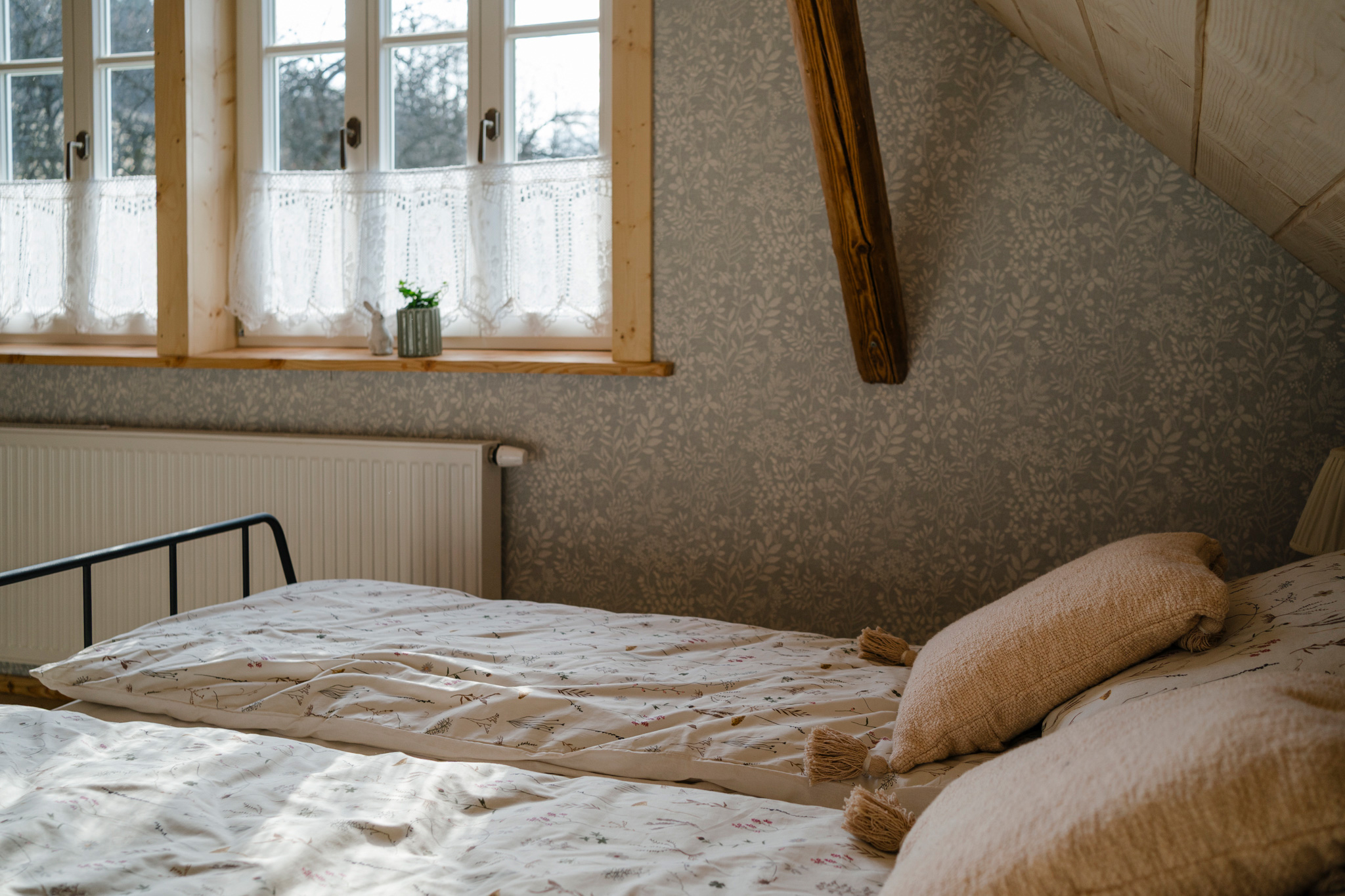 – Na piętrze znajdują się dwa przytulne pokoje. W każdym z nich jest łóżko dwuosobowe oraz możliwość przygotowania dodatkowych dwóch miejsc do spania. Każdy pokój posiada własną łazienkę z prysznicem.