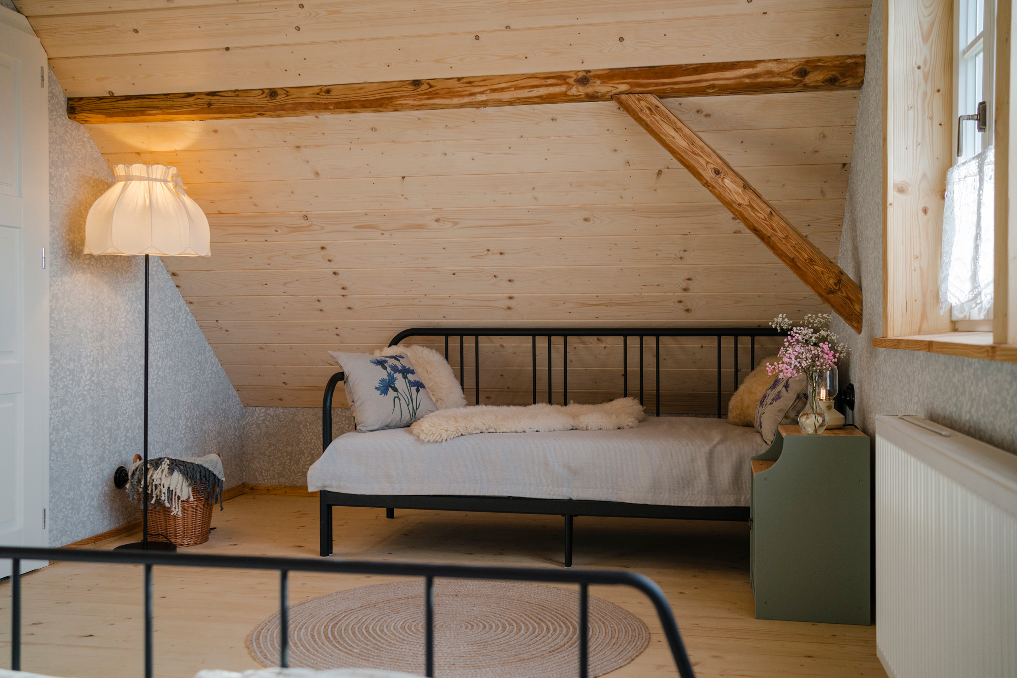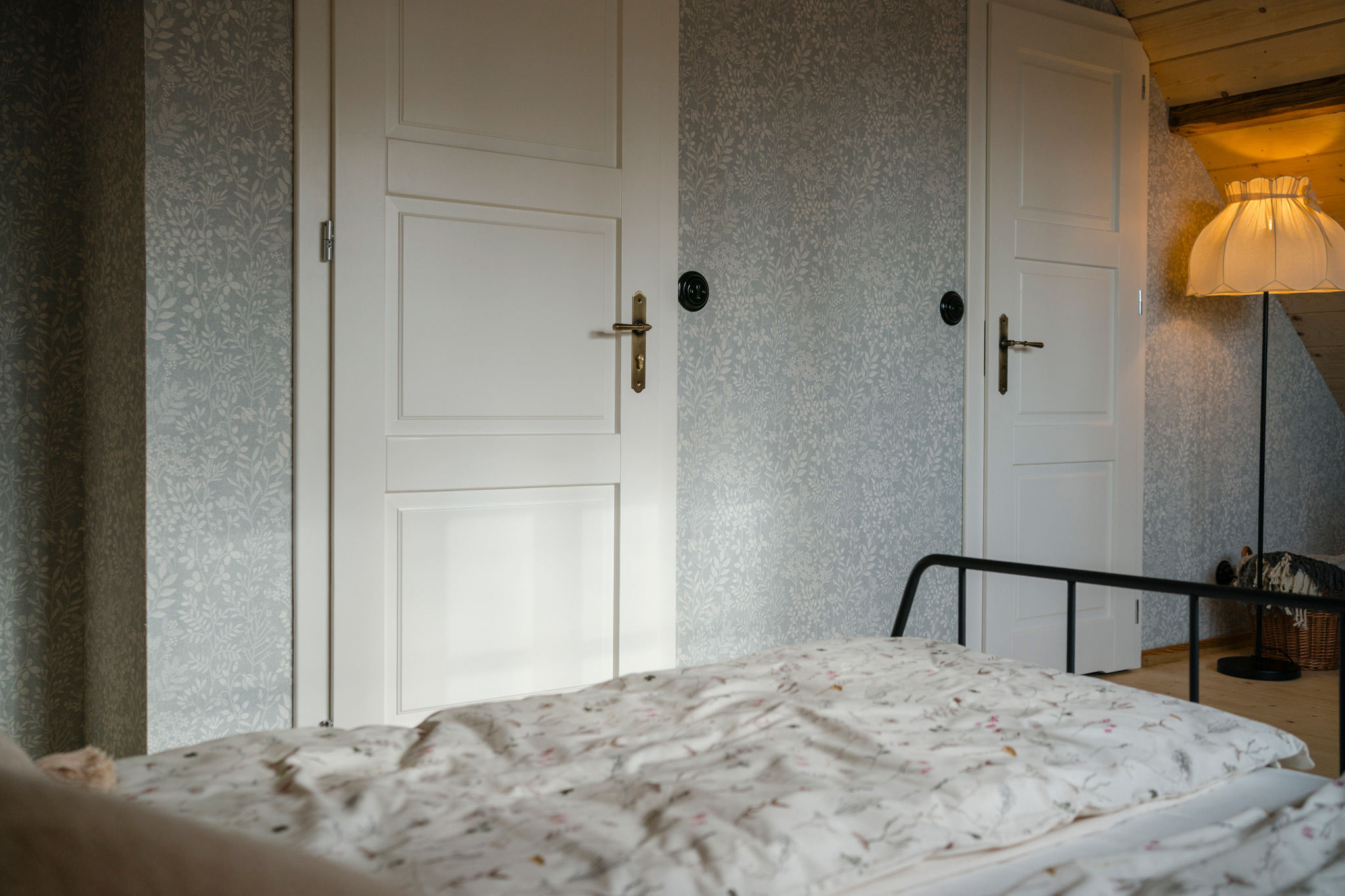 W domu znajdują się trzy kameralne pokoje, każdy z prywatną łazienką.
